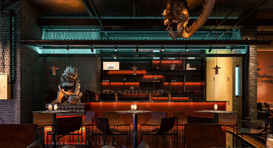 項目簡介: 項目 | 爵派燒烤酒吧 風(fēng)格 | 國潮風(fēng)格 面積 | 460平方米 類型 | 酒吧設(shè)計 位置 | 廣西·南寧萬象城 堅守傳統(tǒng)文化,借“國潮”之風(fēng)尚,體現(xiàn)文化自信,將傳統(tǒng)元素與現(xiàn)代元素融合,既滿足消費者對時尚的需求,契合年輕人文化精神情懷,又能讓中華文化得到弘揚,堅定文化自信。