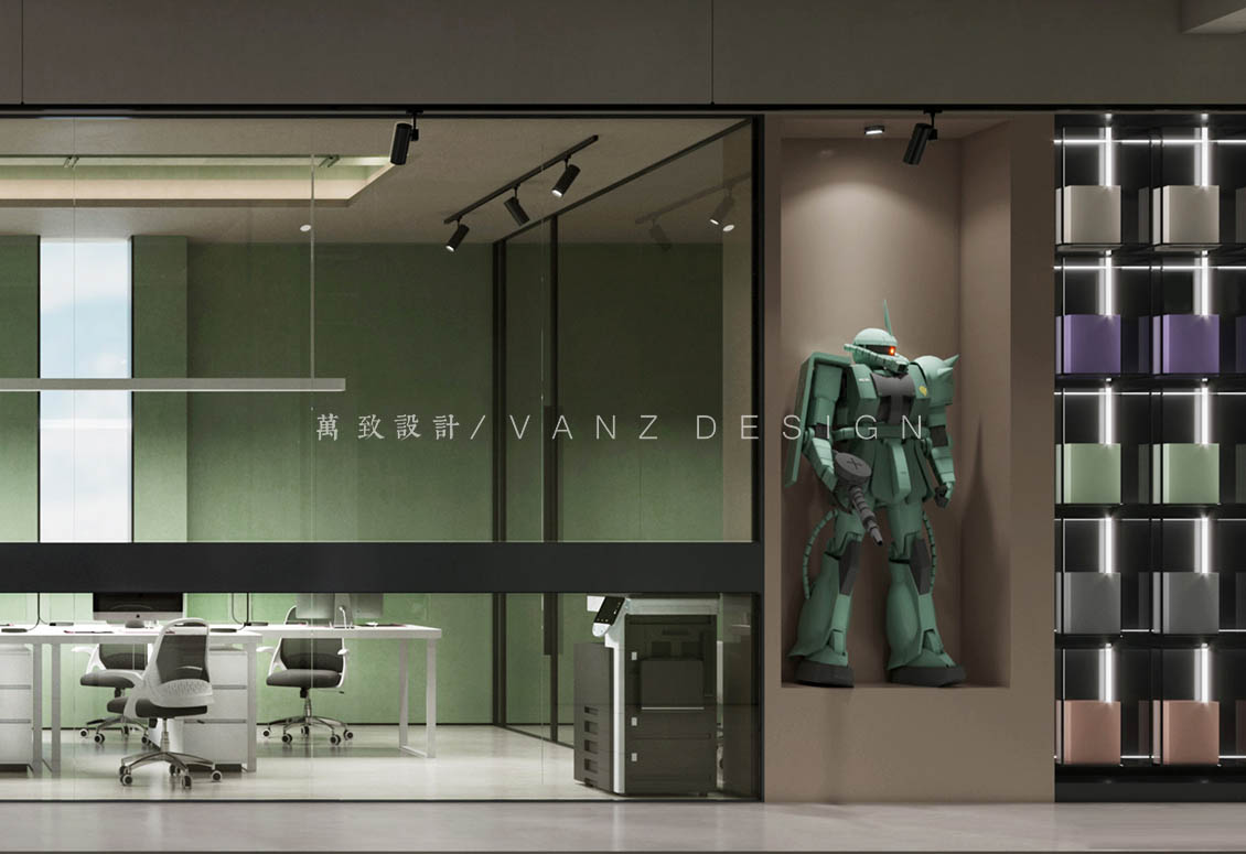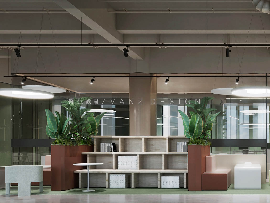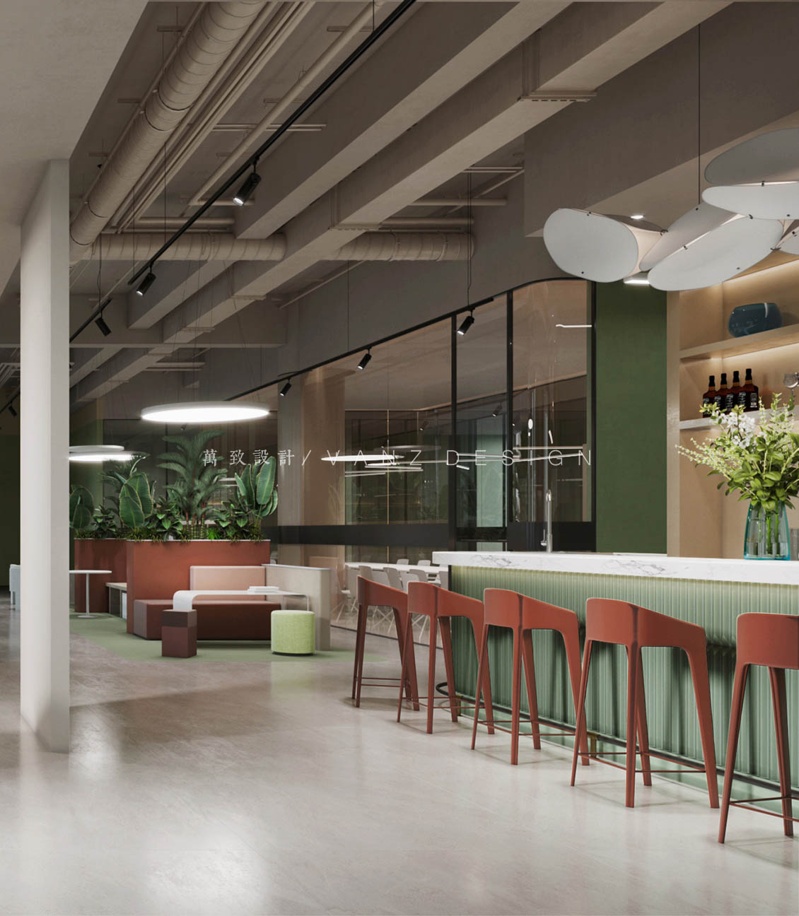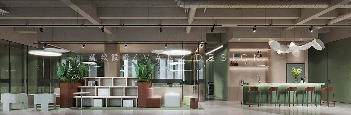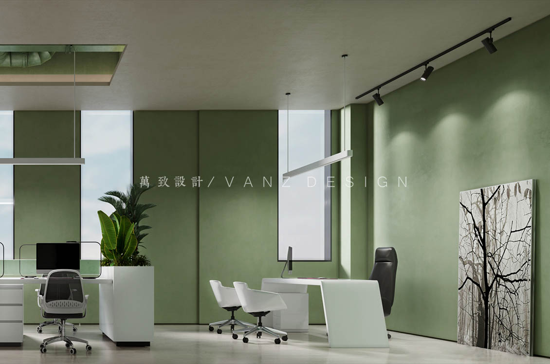 辦公區(qū)/被綠色所包圍的辦公空間,樹立著的畫幅,為這個(gè)空間整體了幾分大自然的氣息,每天就像在大自然之中。