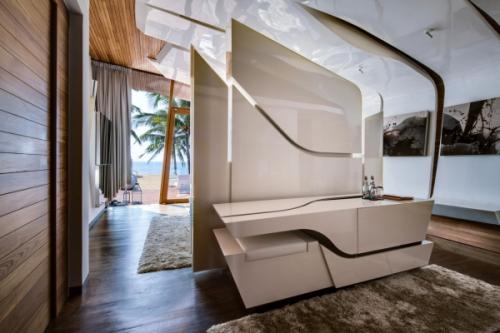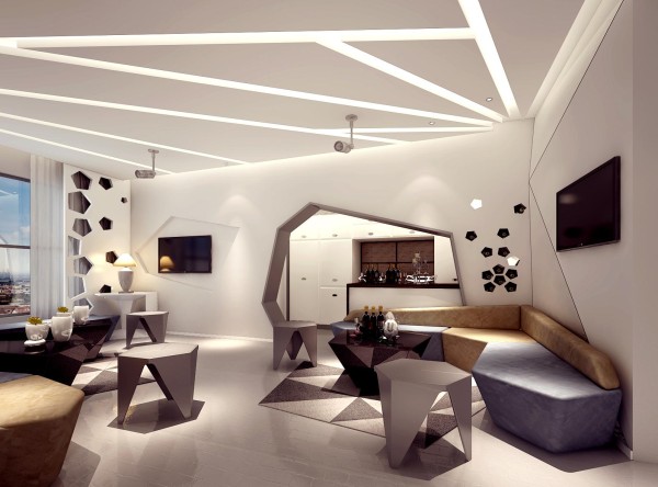 現(xiàn)實(shí)派追求所謂超越現(xiàn)實(shí)的藝術(shù)效果,在室內(nèi)布置中常采用異常的空間組織,曲面或具有流動弧形線型的界面,濃重的色彩,變幻莫測的光影,造型奇特的家具與設(shè)備,有時還以現(xiàn)代繪畫或雕塑來烘托超現(xiàn)實(shí)的室內(nèi)環(huán)境氣氛。超現(xiàn)實(shí)派的室內(nèi)環(huán)境較為適應(yīng)具有視覺形象特殊要求的某些展示或娛樂的室內(nèi)空間。