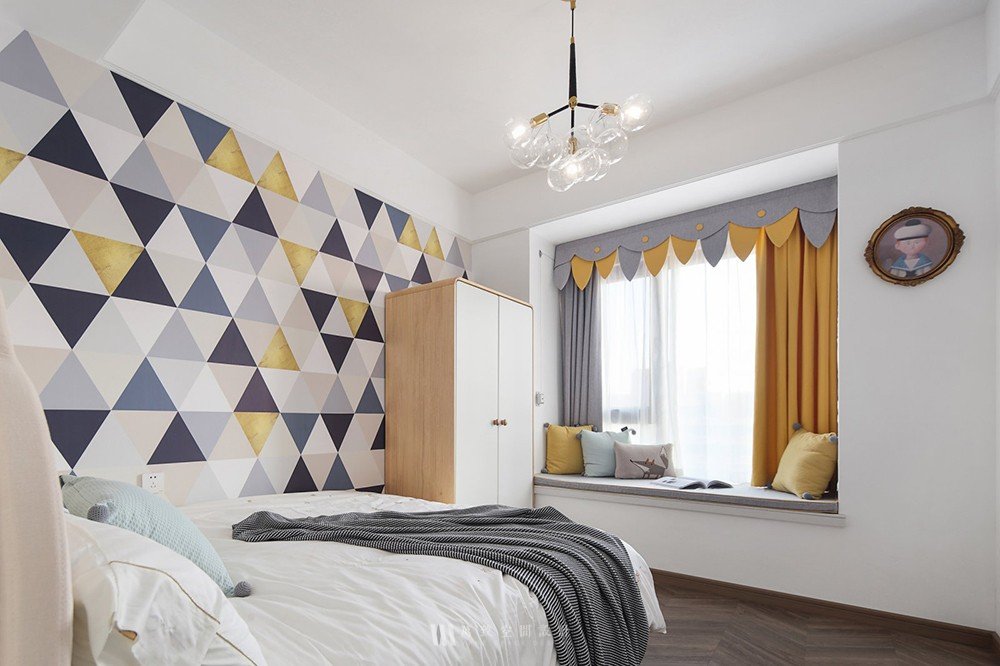 可以選擇非常靚麗的背景墻,選擇跳躍性比較大的各種顏色進行裝飾,這個樣子可以讓臥室看上去非?;顫?,早上起來的時候可以讓自己的心情變得非常好,雖然顏色非常亮麗,但是因為靚麗的顏色設(shè)計在床頭背景墻上面,睡覺的時候并不會對睡眠造成影響,所以這種設(shè)計大家可以放心使用。