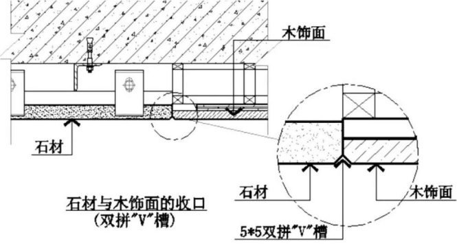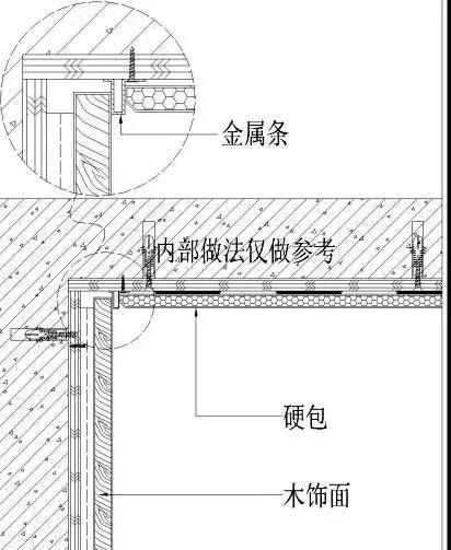 木飾面收口方式,不管是針對常規(guī)木飾面的厚板還是貼在基層板上的薄木貼面板均適用。